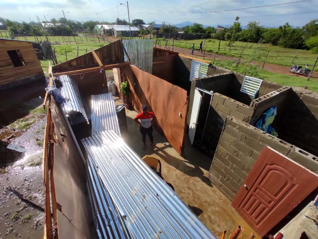 Dos familias desplazadas por la destrucción de sus viviendas y otros 15 hogares parcialmente fueron afectados para un total de 17 casas dañadas durante una tormenta en el sector Brisa del kilómetro 4 del distrito de Cañongo de la provincia de Dajabón.
