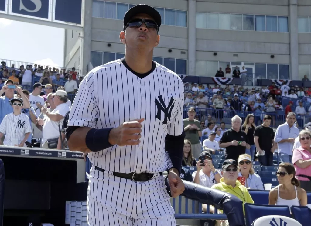 Rodríguez llevaba uniforme blanco de los Yankees con las telas a rayas en el primer juego de entrenamiento en la casa del equipo en Tampa, en lugar de la camiseta azul oscura que generalmente utiliza el conjunto en los juegos de exhibición.