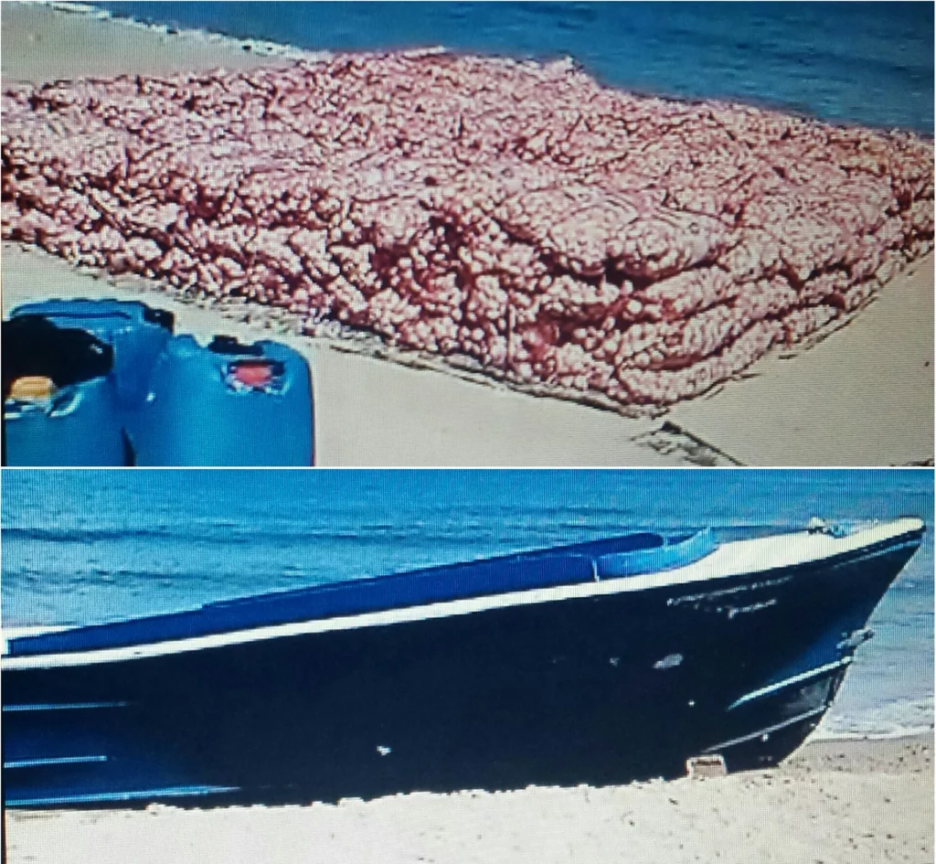 Según un video enviado a este redactor por lugareños de allí, el cargamento de ajo introducido al país de contrabando vía marítima, fue colocado sobre la arena a menos de dos metros de la embarcación que fue dejada varada en la orilla de dicha playa.