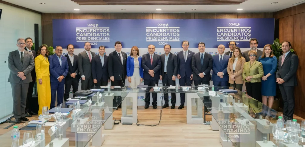 Por el Conep estuvieron Celso Juan Marranzini, presidente; César Dargam, vicepresidente ejecutivo; Julio Brache, presidente de la AIRD; Christopher Paniagua, del Banco Popular Dominicano, y David Llibre, presidente de la Asonahores.