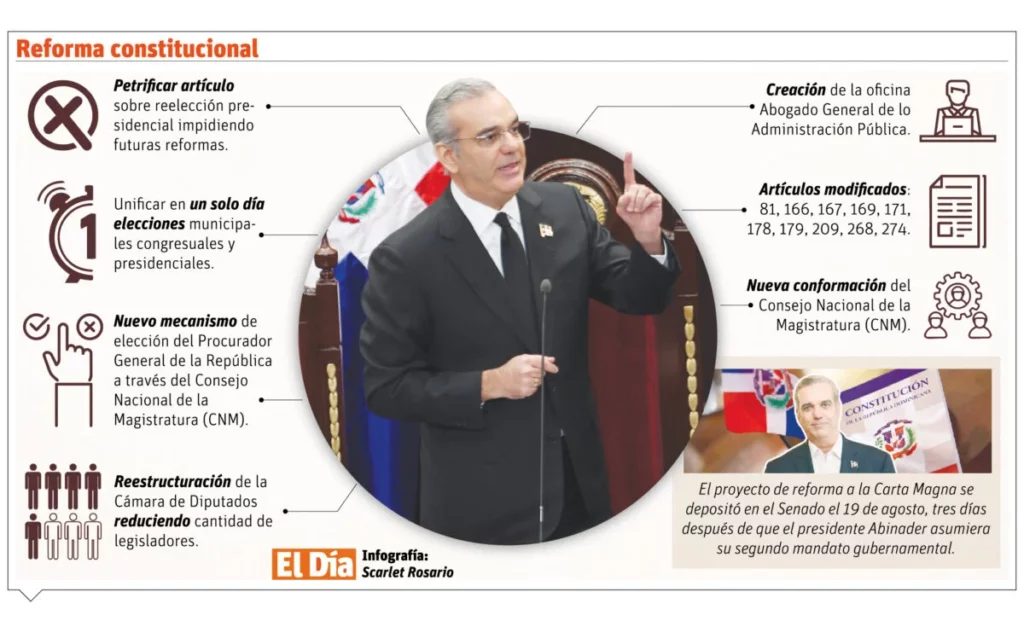 De su lado, el presidente de la Asamblea Nacional Revisora, senador Ricardo de los Santos, expresó que esta esencial Reforma a la Carta Magna es el resultado de la trascendental iniciativa emprendida por el ciudadano presidente Luis Abinader, que por su amplia visión de estadista democrático ha renunciado a las lisonjas naturales que asedian al poder y al egocentrismo que genera.