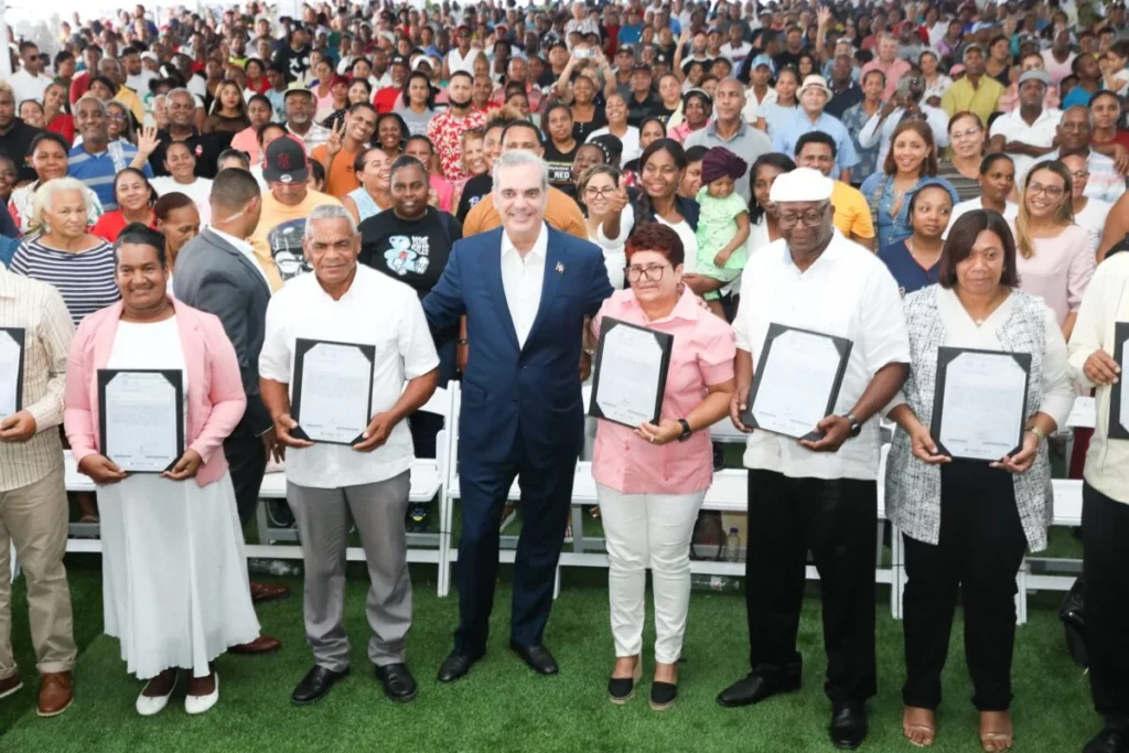 Pedro Brand.- El presidente Luis Abinader entregó este viernes en el distrito municipal La Guáyiga 2,100 títulos de propiedad que impactará de manera directa a igual cantidad de familias de esta zona.