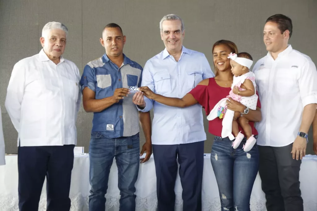 Santiago.- Como parte del Plan Mi Vivienda, el presidente Luis Abinader entregó este viernes en el barrio Los Salados 60 apartamentos a igual número de familias que podrán mudarse dignamente a su techo propio con papeles y seguridad.