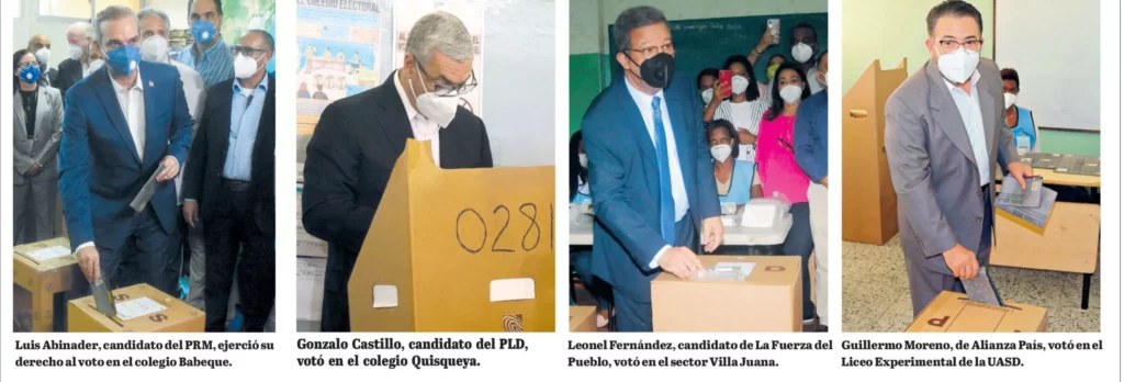 La Presidencia de la República tenía seis candidatos que votaron antes del medio día, un hecho común en casi todos, excepto en Leonel Fernández, de Fuerza del Pueblo y una coalición de varios partidos, que hasta estas elecciones solían hacerlo a media tarde. Esta vez votó a las 11:30. Anoche felicitó a Luis Abinader, al que le reconoció la victoria pasadas las 11 de la noche.