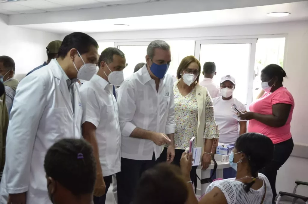 El presidente Abinader desarrolla este domingo una agenda de supervisión por varios centros de vacunación en el municipio de Haina y Santo Domingo Oeste acompañado del ministro de Salud Pública, Daniel Rivera.
