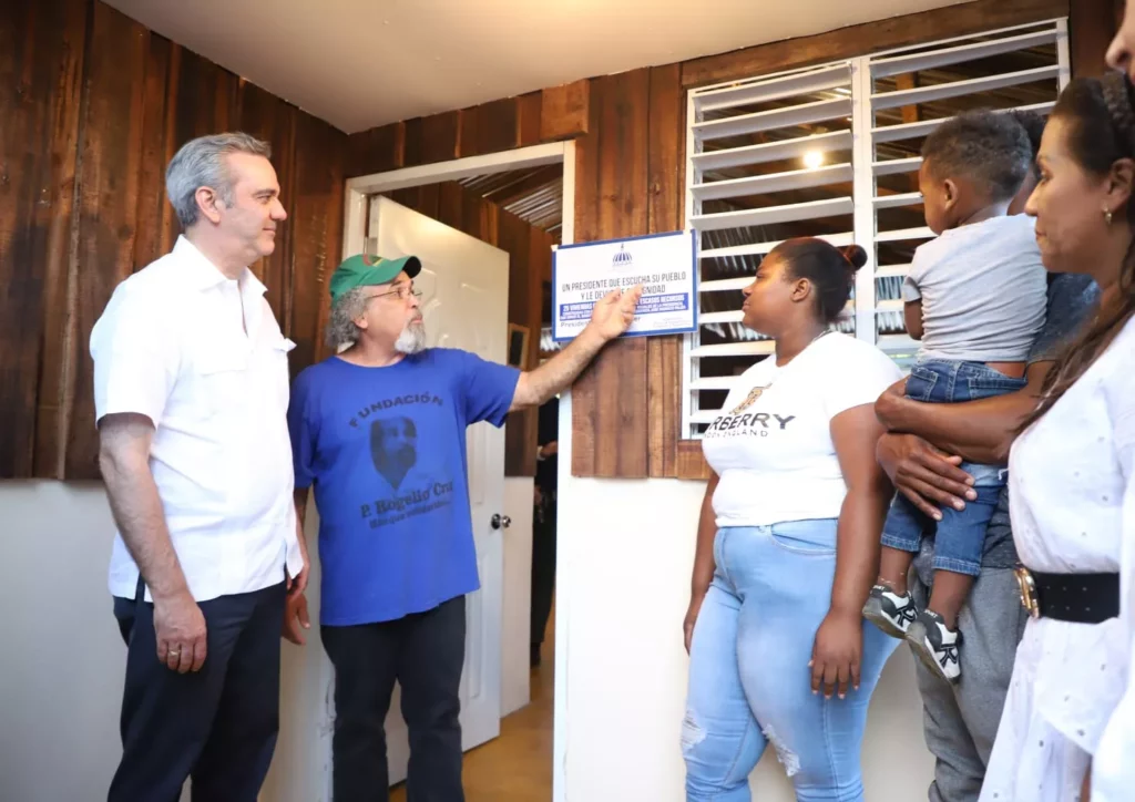 Sánchez Ramírez.- El presidente Luis Abinader, acompañado del padre Rogelio Cruz, entregó 25 viviendas a igual cantidad de familias en Arenoso de Cevicos, provincia Sánchez Ramírez.