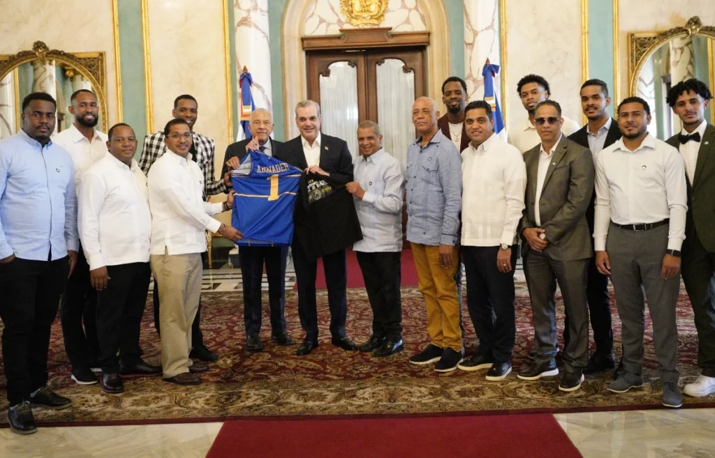 Santo Domingo.-El presidente Luis Abinader recibió ayer al club Mauricio Báez, campeones del Torneo de Baloncesto Superior (TBS) del Distrito Nacional 2024, quienes conquistaron su décima corona en el torneo y la segunda de manera consecutiva.