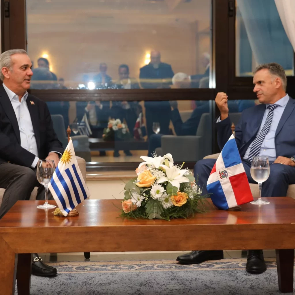 El presidente Abinader abordó con Yamandú Orsi temas de interés común, destacando la importancia de fortalecer los lazos de amistad y cooperación entre ambos países. El jefe de Estado estuvo acompañado por el exministro de Obras Públicas, Deligne Ascención; el embajador dominicano en Uruguay, Fidel Santana; y el senador de la provincia Santo Domingo, Antonio Taveras.