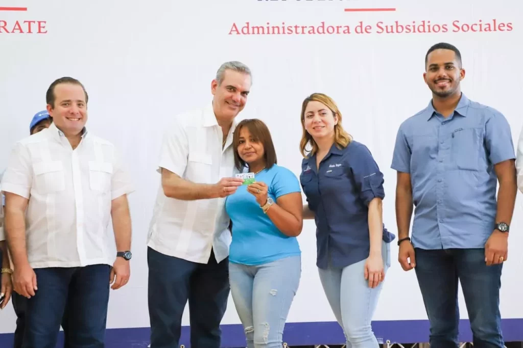 A su llegada, el presidente Abinader hizo entrega de tarjetas a Miguel Reynoso Tavares, Ana Celia Jiménez, Rosa Alfonsina De Los Santos y Anaisa González en representación de los beneficiados.