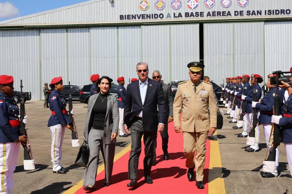 El mandatario salió a las 10:00 de la mañana desde la Base Aérea de San Isidro y allí fue despedido por el ministro de Defensa, teniente general Carlos Antonio Fernández Onofre; el subcomandante de la Fuerza Aérea de República Dominicana, general de brigada piloto Manuel García Lithgow y los comandantes de la Guardia Presidencial, general de brigada Guillermo Caro Cruz y del Regimiento de la Guardia de Honor, teniente coronel Paula Fernández Jiménez.