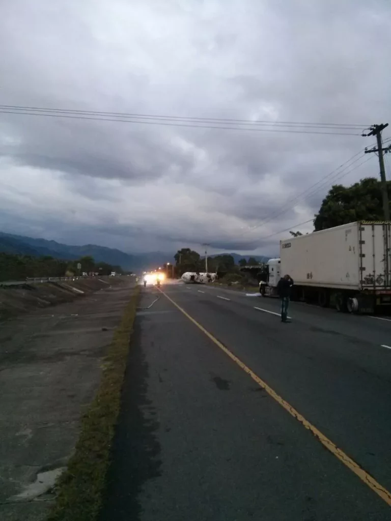 El tránsito ha sido desviado en dirección Santo Domingo- Santiago, después de Jacaranda a la derecha, debido a que el tanquero se volcó quedando atravesado en la vía, con un escape de gas.