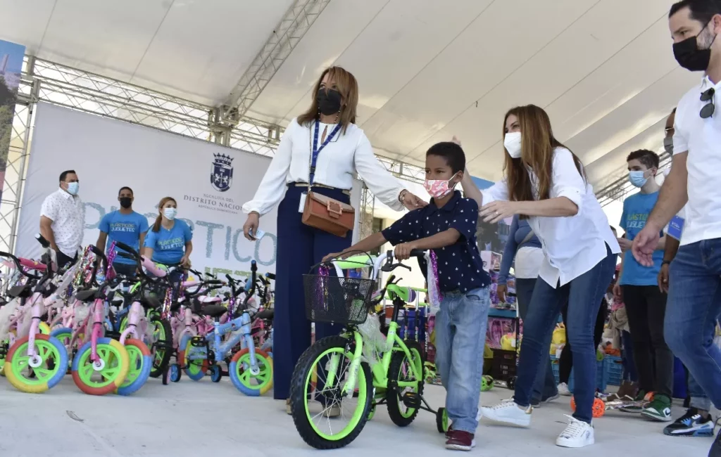 “Valió la pena la fila, estoy satisfecha porque tengo cuatro hijos y aquí llevamos bicicletas y patinetas”, dijo emocionada Carolina Sánchez, una madre del sector Mata Hambre, que fue en busca de los juguetes para sus vástagos.