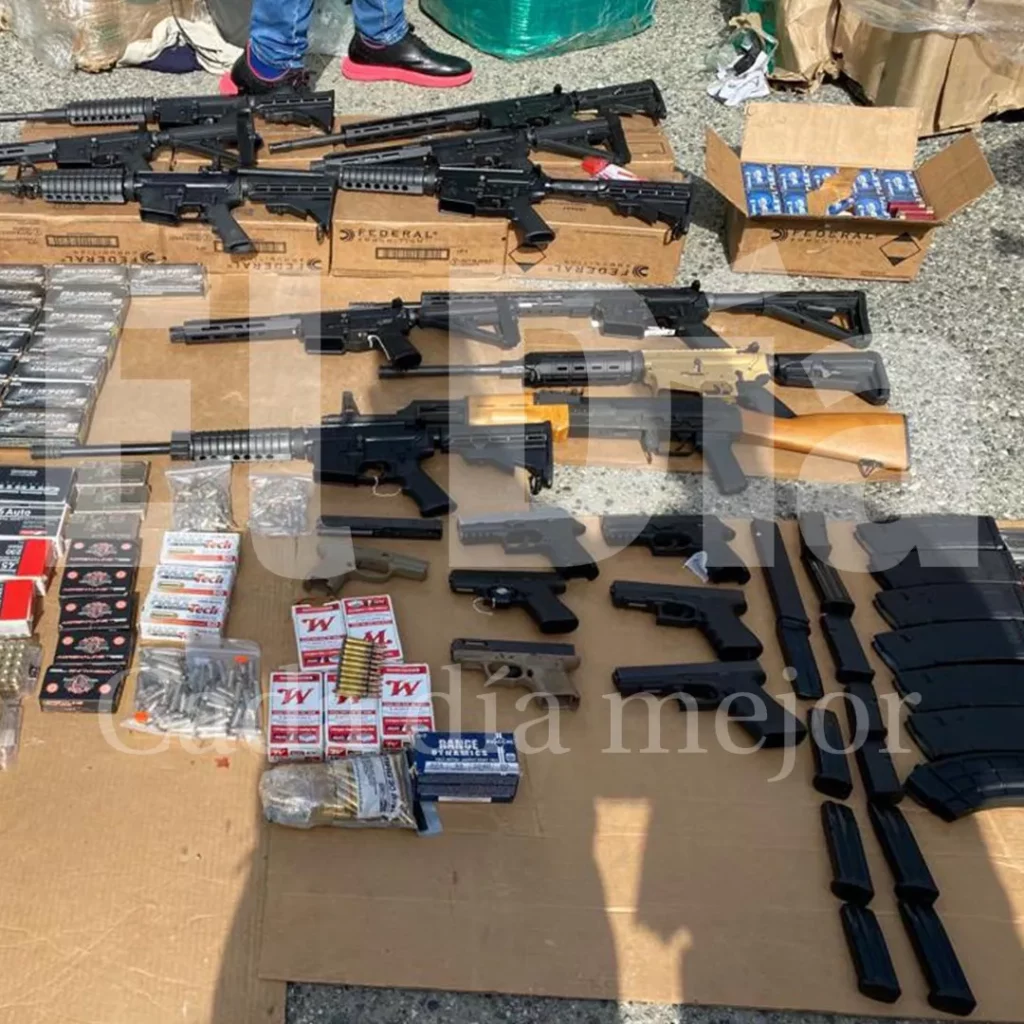 En el hallazgo fueron encontrados fusiles y pistolas de distintas marcas, así como dinero en efectivo, vehículos, entre otros.