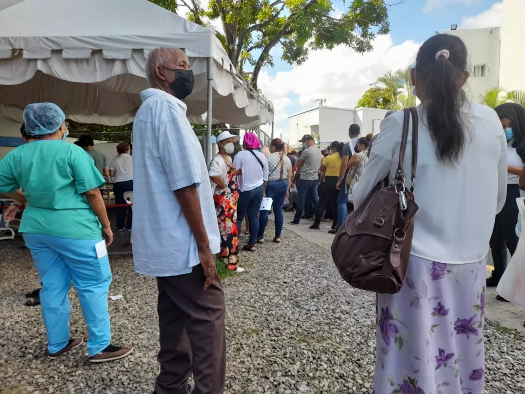 SANTO DOMINGO.- En el hospital Francisco Moscoso Puello las personas en busca de pruebas PCR continuaban llegando la mañana de este lunes.