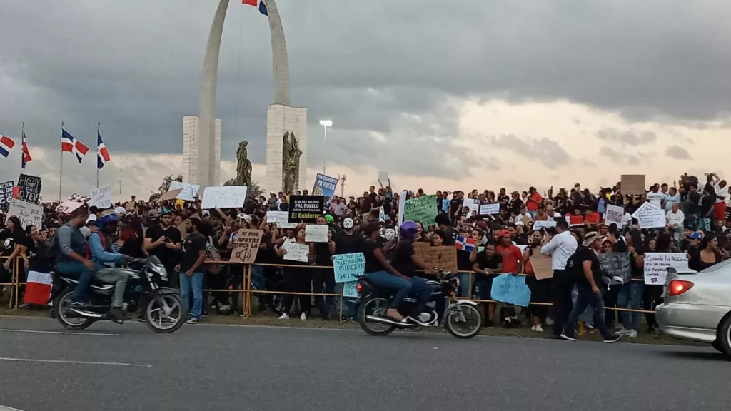 Los manifestantes, en su mayoría jóvenes, se han estado apostando desde el lunes frente a la sede de la Junta Central Electoral para exigir la renuncia del pleno y sus suplentes en el organismo, así como una explicación detallada sobre por qué se suspendió el proceso electoral.