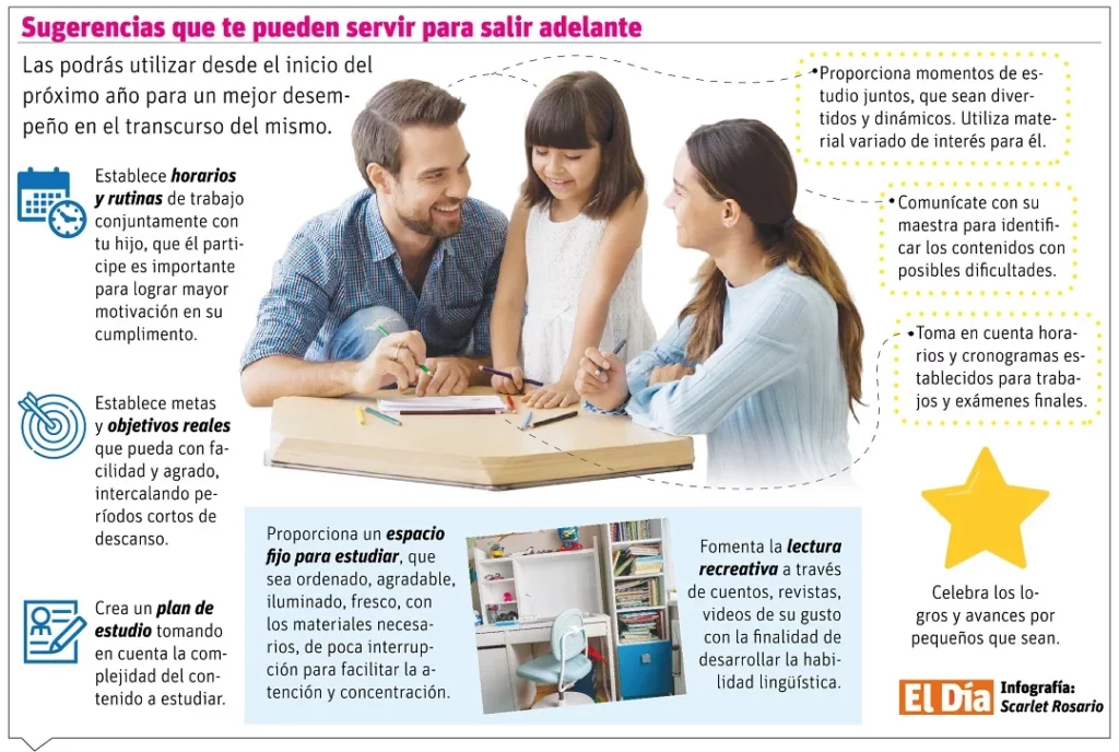 “Pero no todo está perdido, aún hay tiempo, lo importante es estar allí como padres para brindar apoyo, hacerlos sentir seguros y motivados ante el aprendizaje propio del nivel cursante. Recuerde que una calificación no determina la capacidad intelectual o el aprendizaje verdadero de tu hijo”, apunta.