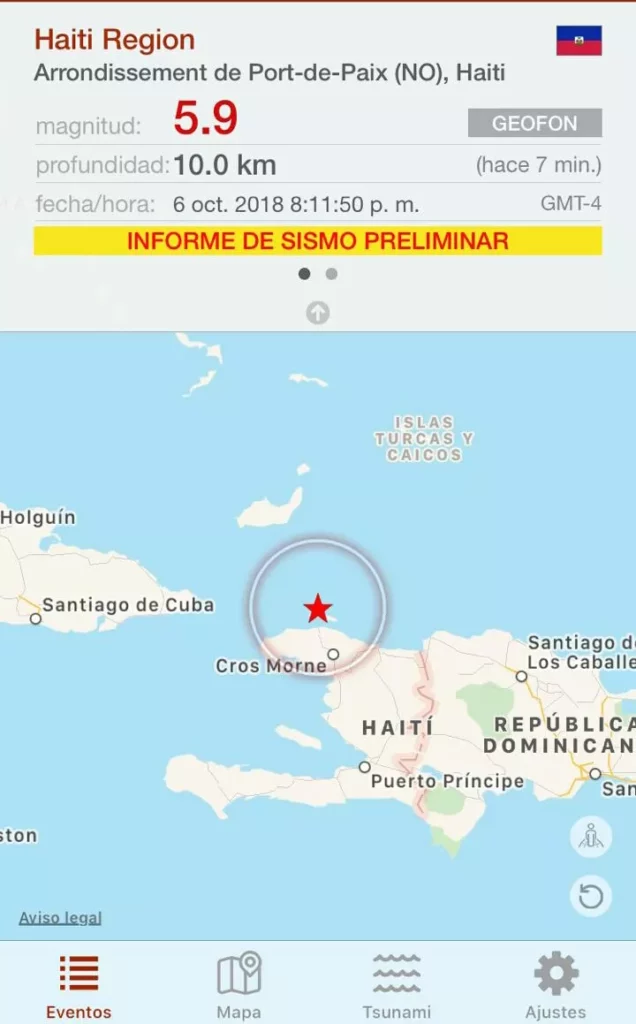 Las autoridades no emitieron ninguna alerta de tsunami. El epicentro del seísmo se registró a 20 kilómetros al norte de Port-de-Paix y a 175 kilómetros de la capital, Puerto Príncipe, a una profundidad de 15,3 kilómetros, a las 20.11 hora local (00.11 GMT), según informó en su página web el Servicio Geológico de Estados Unidos (USGS, siglas en inglés).