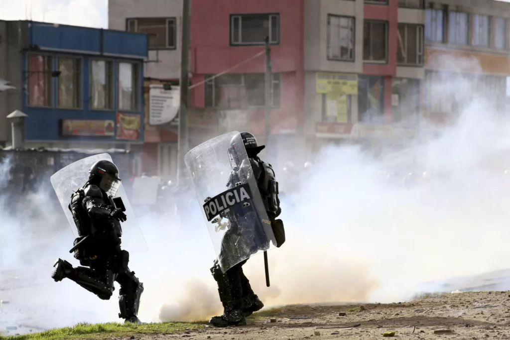 “Tenemos lamentablemente 21 policías lesionados, afortunadamente ninguno de ellos de gravedad. Se presentó un incidente en Bogotá, (donde) un miembro de nuestro Escuadrón Móvil Antidisturbios (Esmad) resultó lesionado en un ojo”, detalló el general Vargas sin informar si hubo civiles heridos.