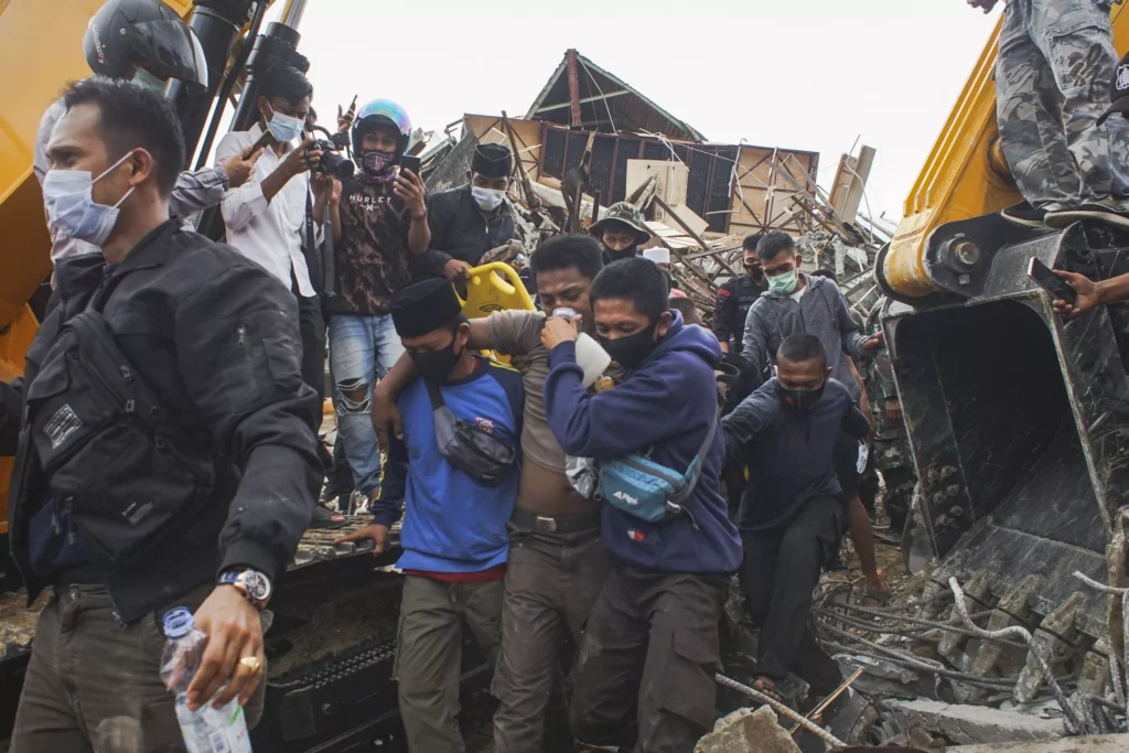 En muchas áreas no había electricidad ni servicio de telefonía. Muhamad Idris, secretario de Administración de Célebes Occidental, dijo a TVOne que el edificio del gobernador estaba entre los desplomados en Mamuju, la capital provincial, y mucha gente allí seguía atrapada.
