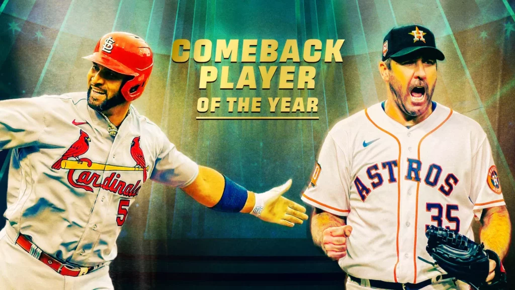 Verlander es el primer Astro en ser Regreso del Año, mientras que Pujols es el tercer Cardenal en conseguirlo, uniéndose a Chris Carpenter (2009) y Lance Berkman (2011). El honor se ha otorgado por Major League Baseball desde el 2005, al “jugador de cada liga que logró ascender en el terreno durante una temporada”. Los ganadores son determinados mediante los votos de cada uno de los reporteros de MLB.com de cada equipo.