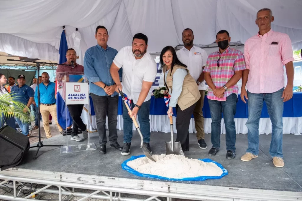 HIGUEY, LA ALTAGRACIA, RD.- El alcalde del municipio Higüey, doctor Rafael Barón Duluc (Cholitín), en compañía de la ingeniera Nuvia Oliver, representante de Banreservas, dieron el primer palazo para la construcción del Paseo Turístico Boulevard de Higüey.