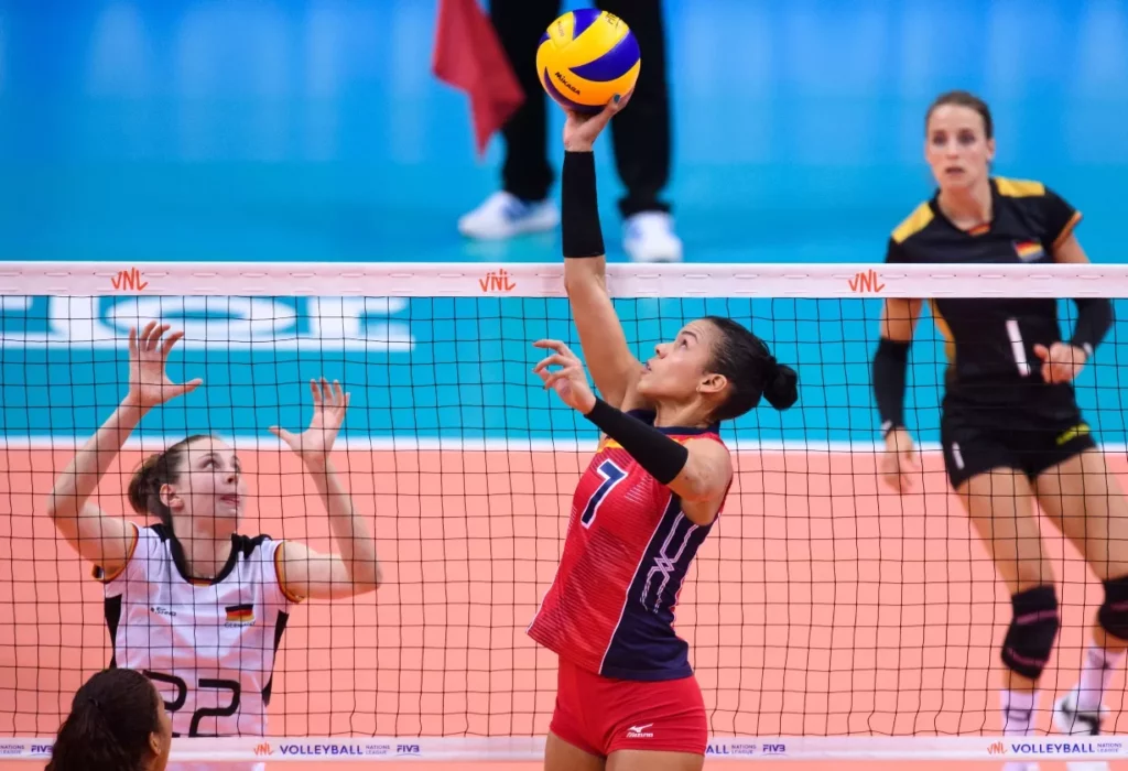 Luego las Caribeñas reaccionaron con buenos ataques de Brayelin Martínez, Eve Mejía y Bethania de la Cruz y lograron igualar el marcador a 10. Fue en ese momento cuando Alemania hizo un rally de 5-0 para alejarse en la pizarra 17-12.