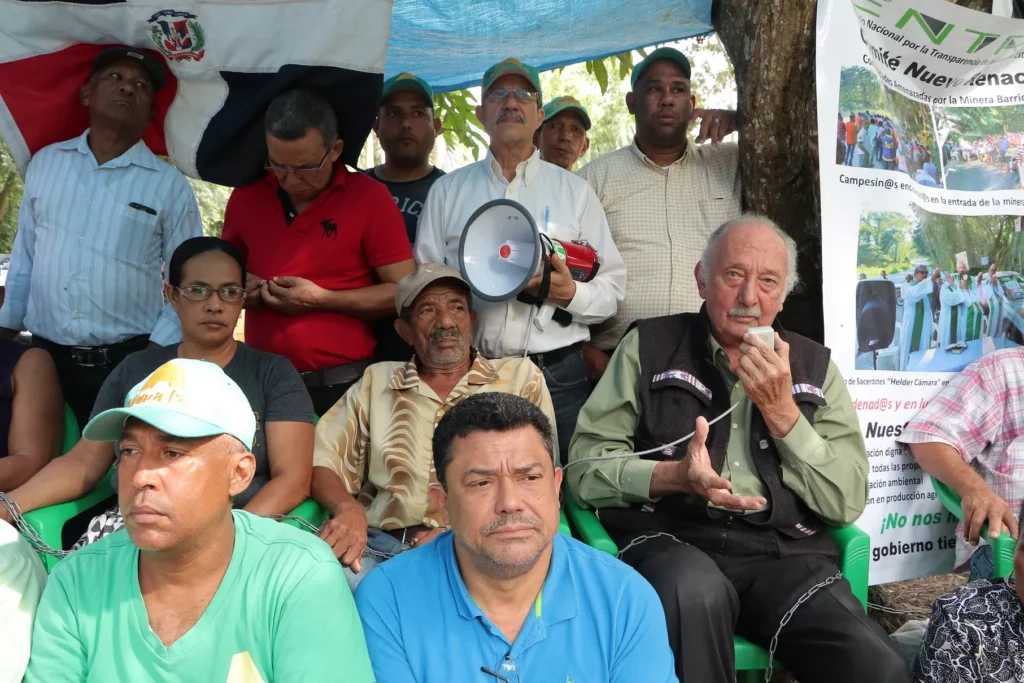 SANTO DOMINGO.-Una delegación de Alianza País encabezada por el diputado Fidelio Despradel visitó hoy a los campesinos y dirigentes comunitarios que llevan más de 31 días encadenados frente a la entrada de la mina de oro de Pueblo Viejo, provincia Sánchez Ramírez, reclamando la reubicación de todas las familias afectadas por la presa de cola construida por la Barrick Gold en el distrito municipal Zambrana.