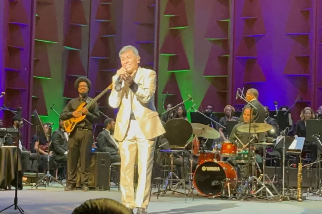 Con una orquesta de 50 talentosos músicos, Torres salió al escenario a las 9:05 de la noche, impecablemente vestido con un traje color champagne y camisa negra, Torres se apoderó del auditorio durante las casi dos horas que permaneció en escena.