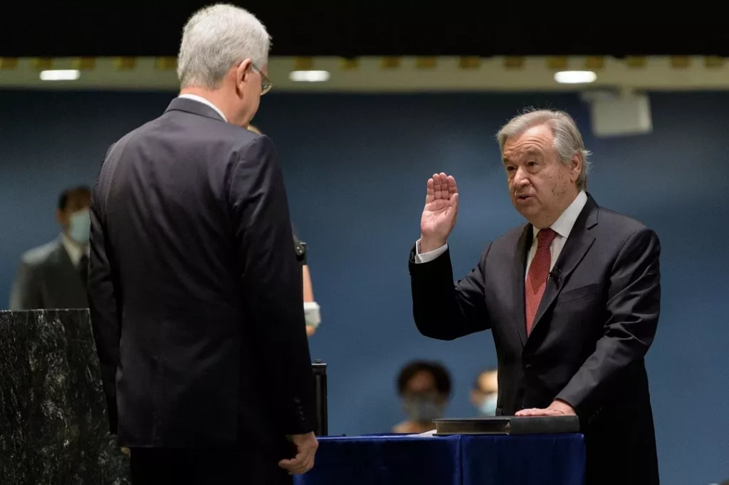 “Tengo el honor de anunciar que su excelencia António Guterres ha sido designado por aclamación como secretario general de las Naciones Unidas para un segundo mandato, que comenzará el 1 de enero de 2022 y finalizará el 31 de diciembre de 2026”, anunció el presidente de la Asamblea General, Volkan Bozkir, tras una ovación general de los representantes de los países de la ONU.