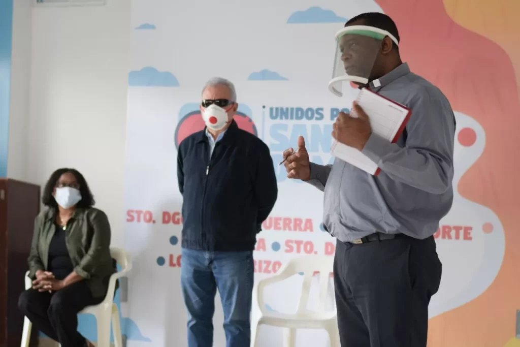 El acto de presentación de Unidos por Santo Domingo se realizó cumpliendo las medidas de distanciamiento social, en el salón de la parroquia Madre del Salvador, con la participación del alcalde Manuel Jiménez; el director del Distrito Municipal San Luis, Rodolfo Valera; los párrocos Nicolás Cuello, Rafael Olivo y Cesáreo Núñez.