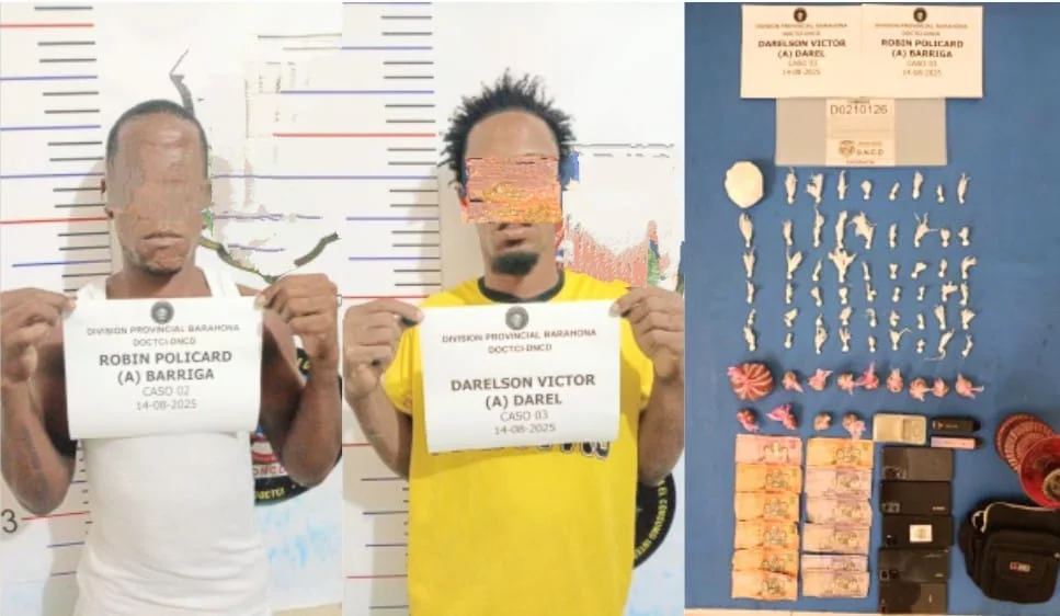 En la intervención fueron incautados 475 gramos de presuntas drogas, una balanza y cinco teléfonos celulares. Los detenidos, identificados como Robin Policard (alias “Barriga”) y Darelson Víctor, residentes en la zona, fueron sorprendidos en posesión de la evidencia.