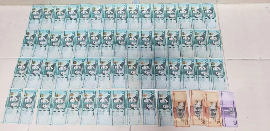 En tanto que, a Escota Peña, al ser capturado a bordo de una pasola, se le ocupó la suma de RD$171,000.00; US$2,307.00, cinco cheques de tres entidades financieras, equivalentes a la suma de RD$941,143.05.