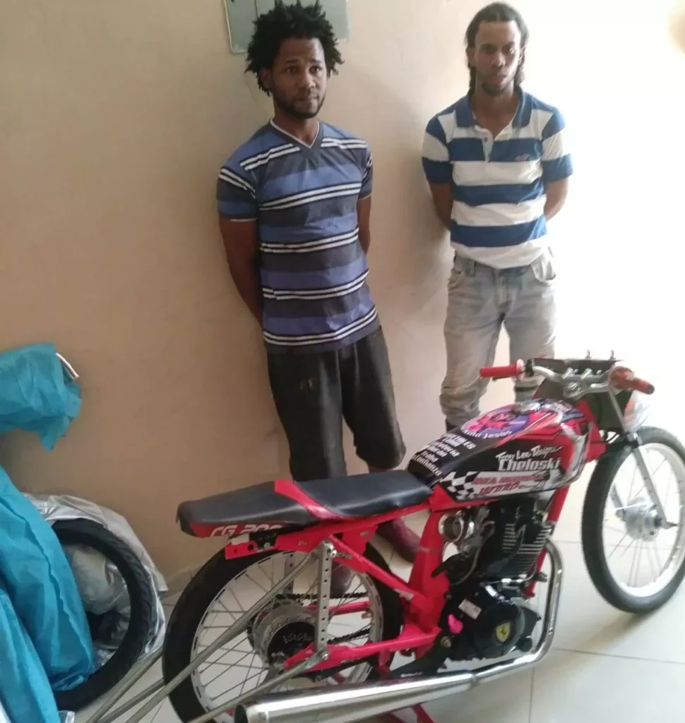 Los detenidos fueron identificados como Luis Fernando Matos Matos (El Famoso Luisito Carrera) y Landi Suriel Suriel, a quienes le ocuparon una motocicleta adulterada que iban a usar en la carrera clandestina.