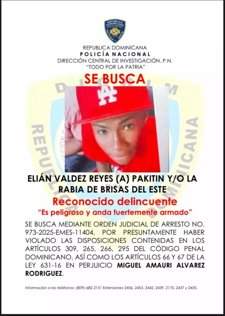 Por este crimen también son perseguidos otros tres presuntos autores, entre ellos Elián Valdez Reyes, conocido como “Pakitin” o “La Rabia”, quien según la Policía se encuentra fuertemente armado.