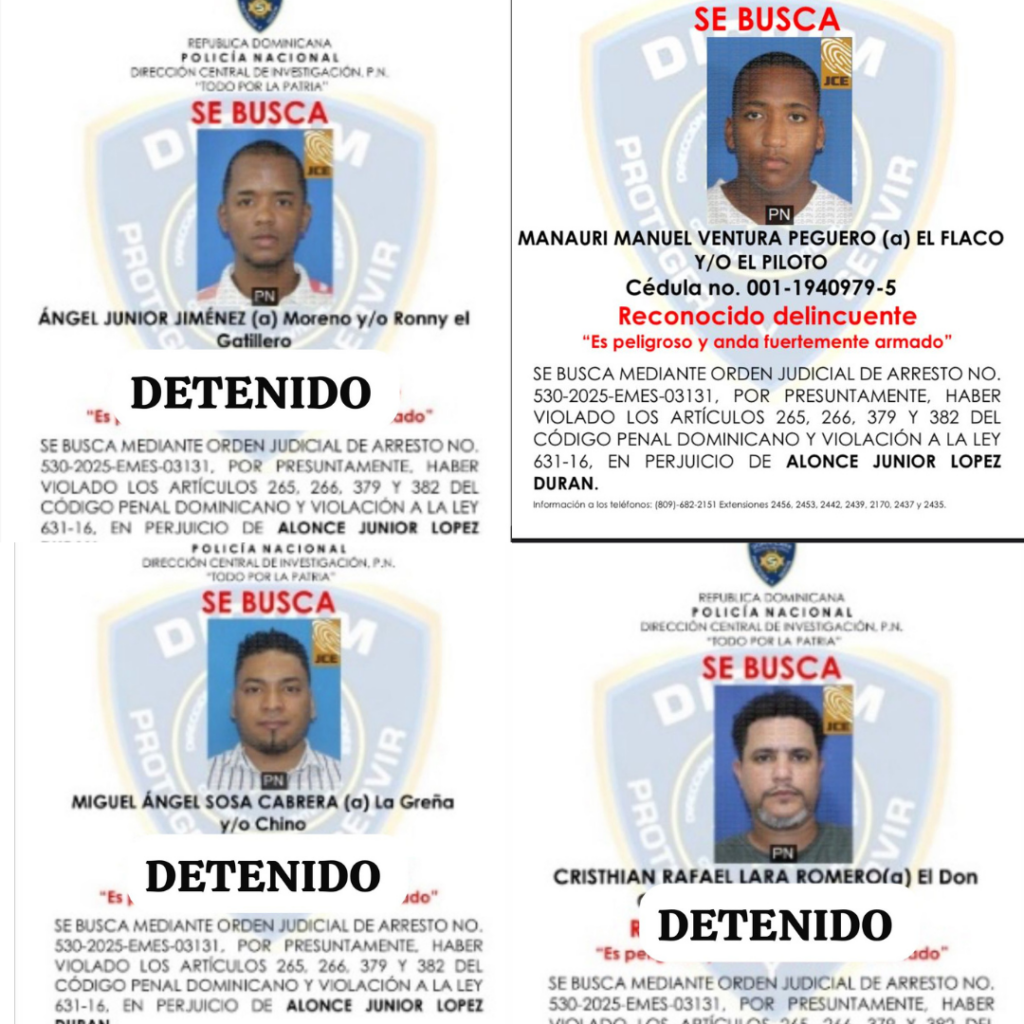 Las capturas se realizaron mediante la orden judicial de arresto No. 530-2025-EMES-03131, en el marco de una amplia labor de inteligencia desarrollada por la Dirección Central de Investigación (DICRIM).