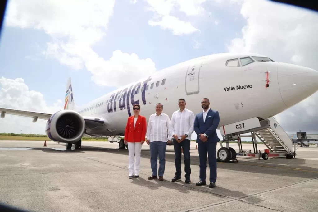 Santo Domingo. – La línea aérea dominicana Arajet recibió su segundo Boeing 737 MAX 8, denominado “Valle Nuevo”, en el Aeropuerto Internacional Las Américas. La moderna aeronave se suma a “Pico Duarte” bajo la estrategia de elevar, promover y crear conciencia sobre la importancia de la preservación de las principales aéreas protegidas del país.