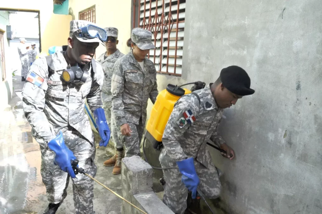 Con ese propósito y cumpliendo instrucciones del Ministerio de Defensa un equipo de la Armada de República Dominicana se trasladó a las provincias de de Peravia, San José de Ocoa y Azua de Compostela donde desplegaron un amplio operativo para eliminar los criaderos del mosquito que produce dicha enfermedad.