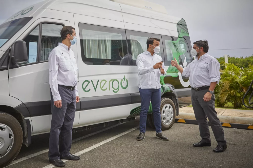 Bávaro.-Evergo y Transporte Monumental suman esfuerzos para fomentar la movilidad eléctrica a través de la primera flotilla de vehículos 100% eléctricos para el servicio de traslado de turistas, desde el propósito compartido de promover el desarrollo de la zona este del país, punto estratégico del turismo nacional, a través de un modelo más sostenible.