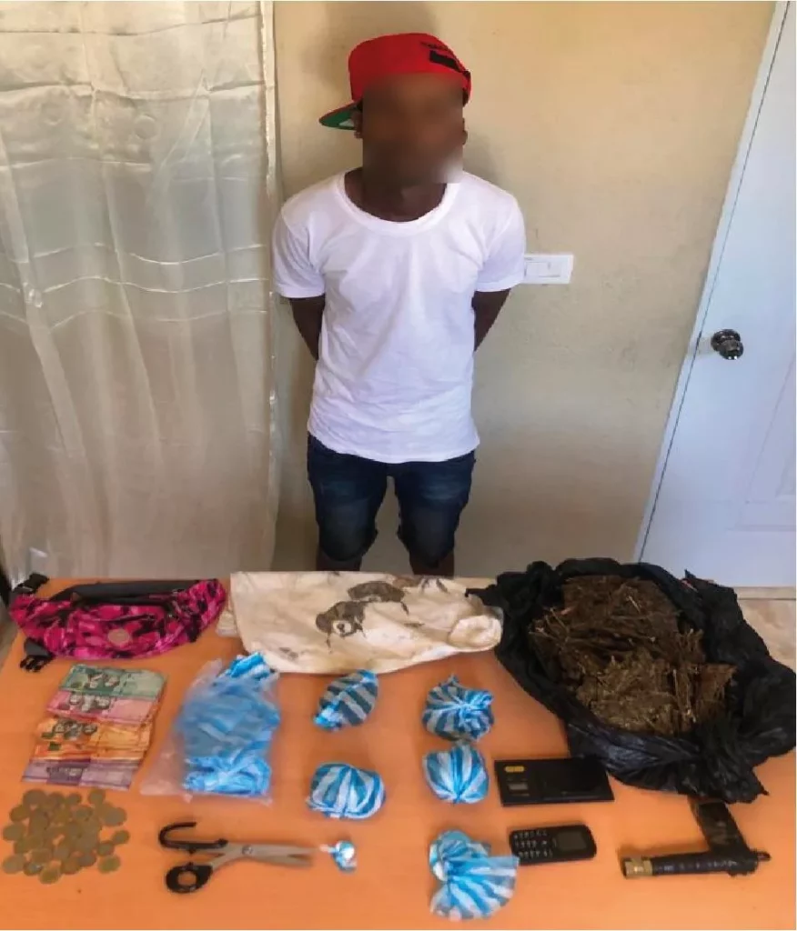 Además, le fueron ocupadas una balanza, un arma de fabricación artesanal (chilena) y 1,855 pesos en efectivo.
