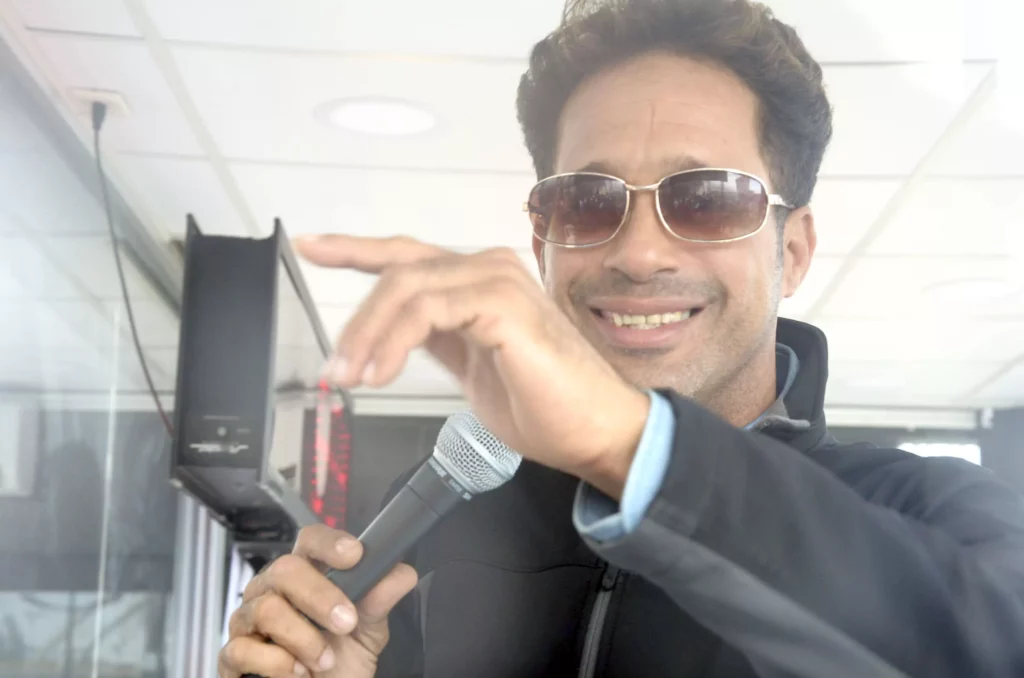 El artista, quien se encuentra dentro de una casa de cristal. Guinness le da cinco minutos por cada hora, pero Carlos ha preferido acumular ese tiempo y cantar más horas de forma seguida y en lugar de tomar los ese tiempo lo alarga a media hora o 20 minutos.