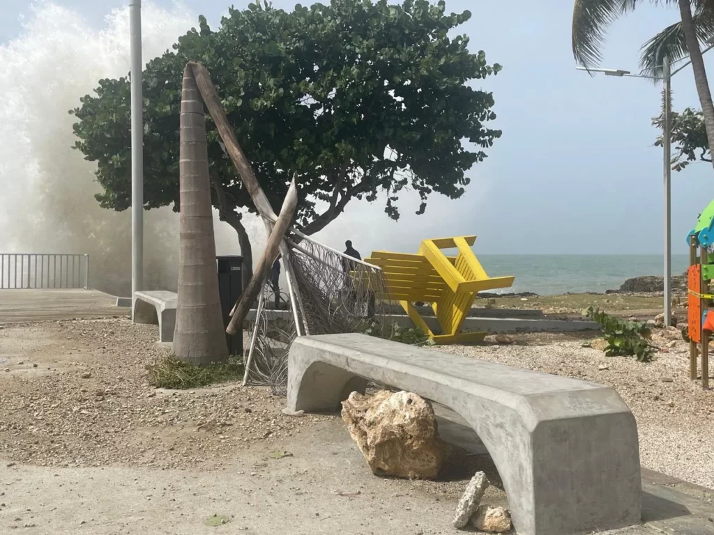 Santo Domingo.– El paso por el país del huracán Beryl provocó grandes marejadas, que dejaron daños en el malecón de Santo Domingo, donde desde tempranas horas de este miércoles se encontraban brigadistas realizando limpieza, removiendo rocas y recogiendo ramas.