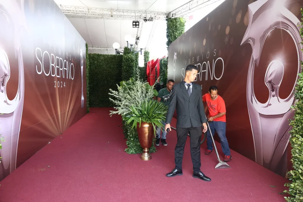 En el lugar se observaron expertos probando las luces y tarimas, floristas quienes se encargan de la decoración de los premios, asimismo, personas limpiando lo que es la alfombra roja.