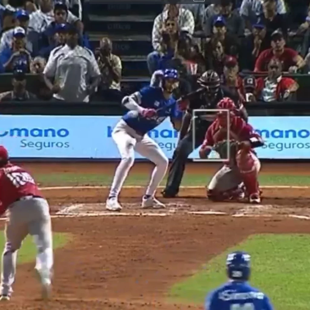 Gustavo Núñez sigue produciendo para el Licey…Con sencillo frente al relevista del Escogido Norwith Gudiño al jardin derecho le dio ventaja 3-2 a los azules en el cierre de la quinta entrada