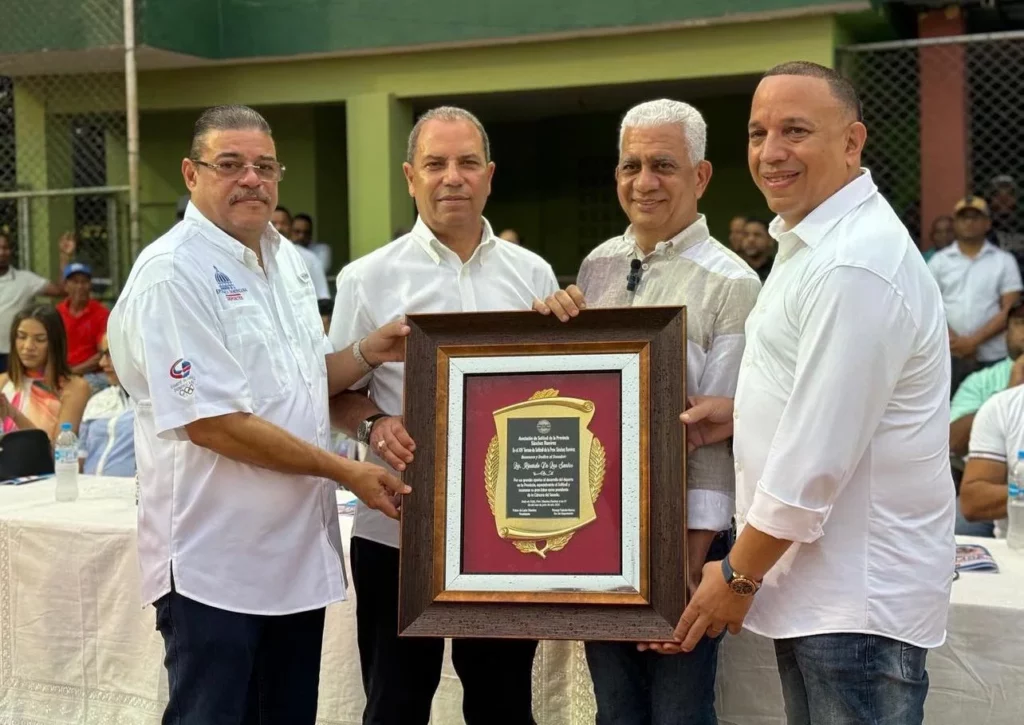 Ricardo de los Santos, senador por Sánchez Ramírez, tras agradecer la entrega del reconocimiento por parte Asociación de Softball de la provincia Sánchez Ramírez ASOPROSARA, se comprometió a continuar apoyando el deporte.