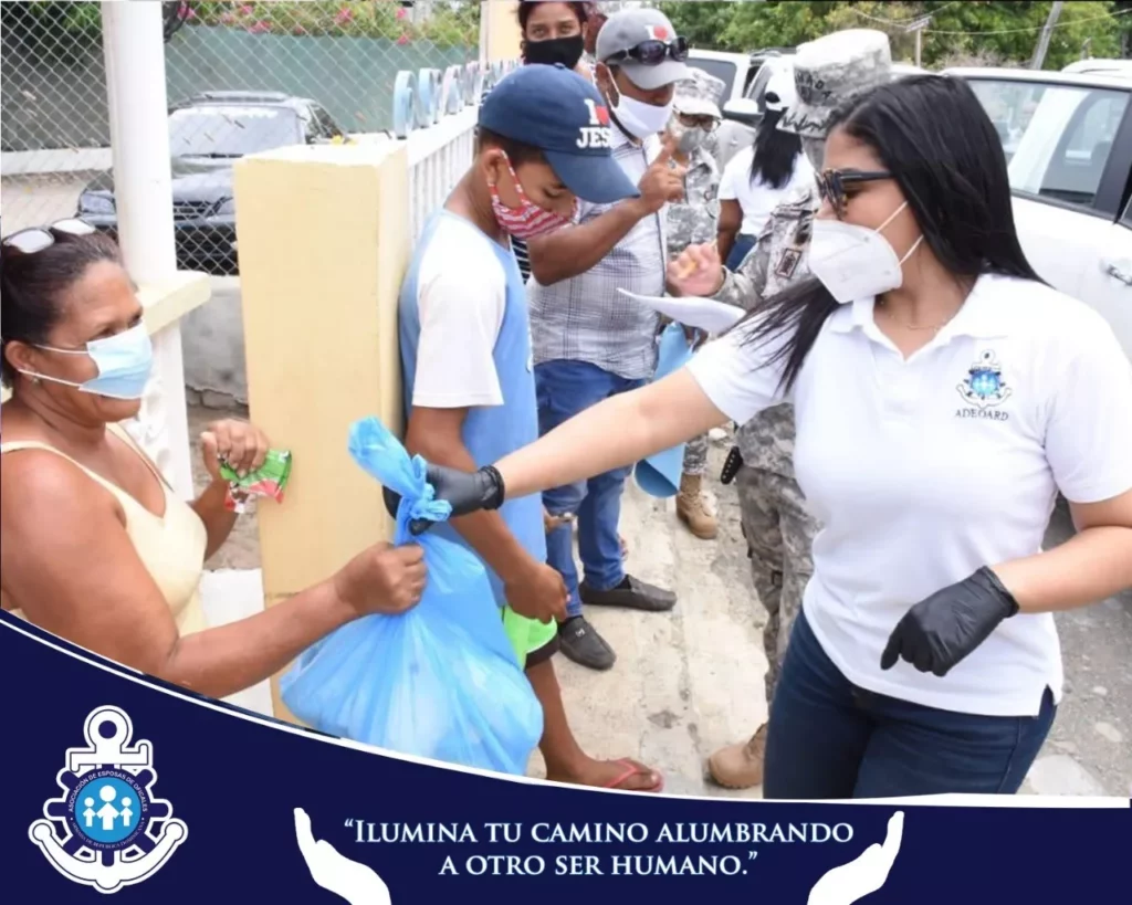 En la jornada dirigida por la licenciada Vanessa Pol de Recio, presidenta de ADEOARD, a las familias beneficiadas con el operativo de acción cívica se les hizo entrega de una apreciable cantidad de raciones alimenticias.