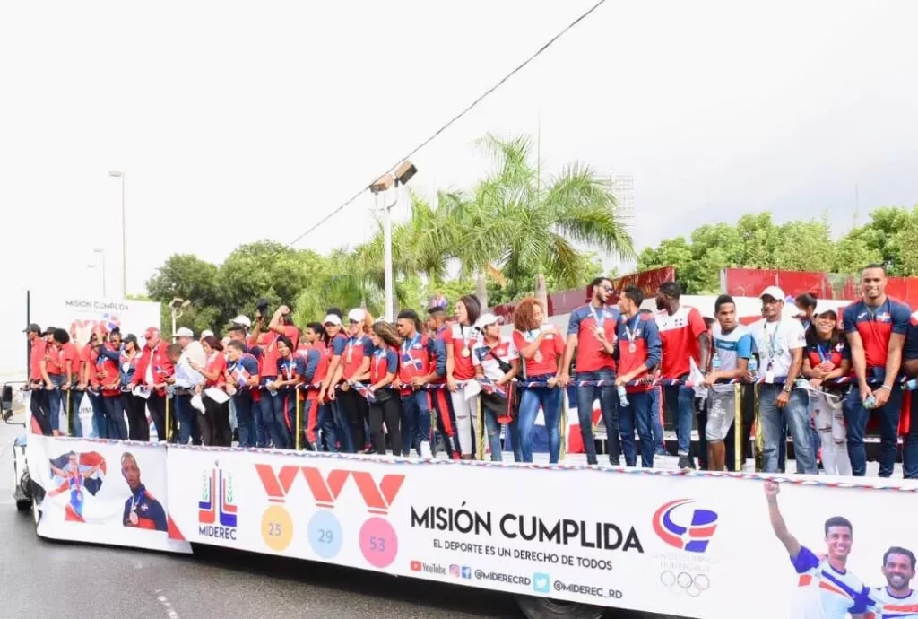 En la caravana participan el ministro de Deportes, Danilo Díaz y el presidente de Comité Olímpico Dominicano Luisín Mejía. Durante el recorrido, decenas de personas salían a recibirlos con algarabía y les felicitaban por las medallas obtenidas en los Juegos de Barranquilla, y por poner en alto al país.