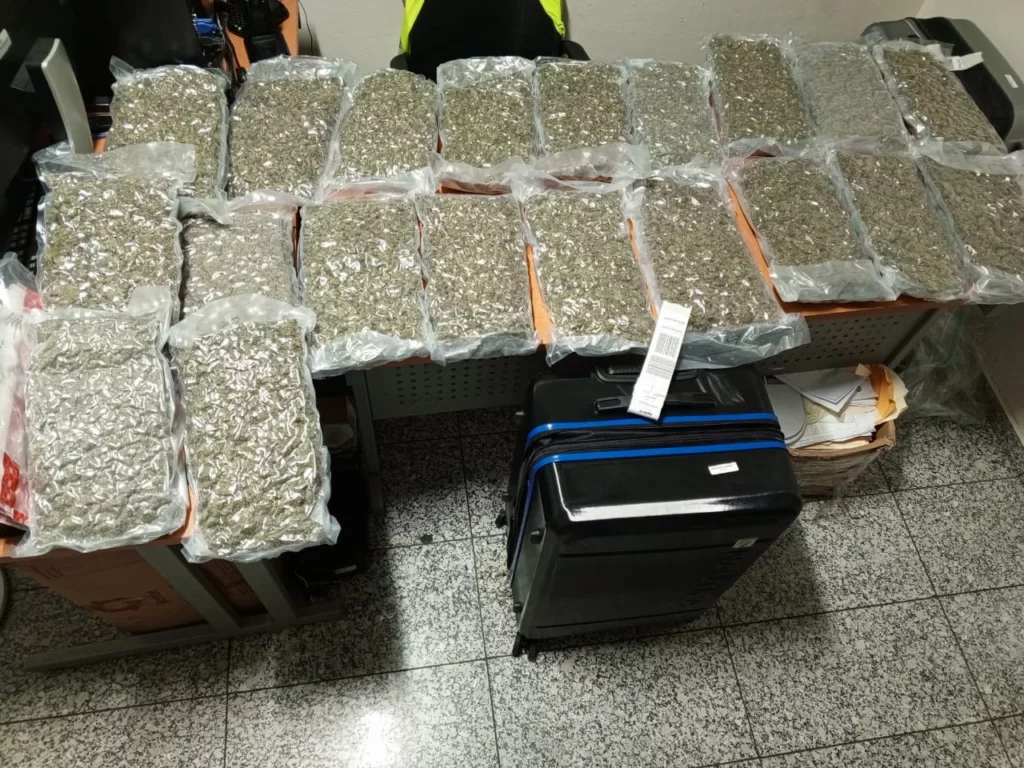 En presencia del fiscal se procedió a abrir dos maletas, en cuyo interior se encontraron distribuidos los 40 paquetes de marihuana con un peso preliminar de 45 libras.