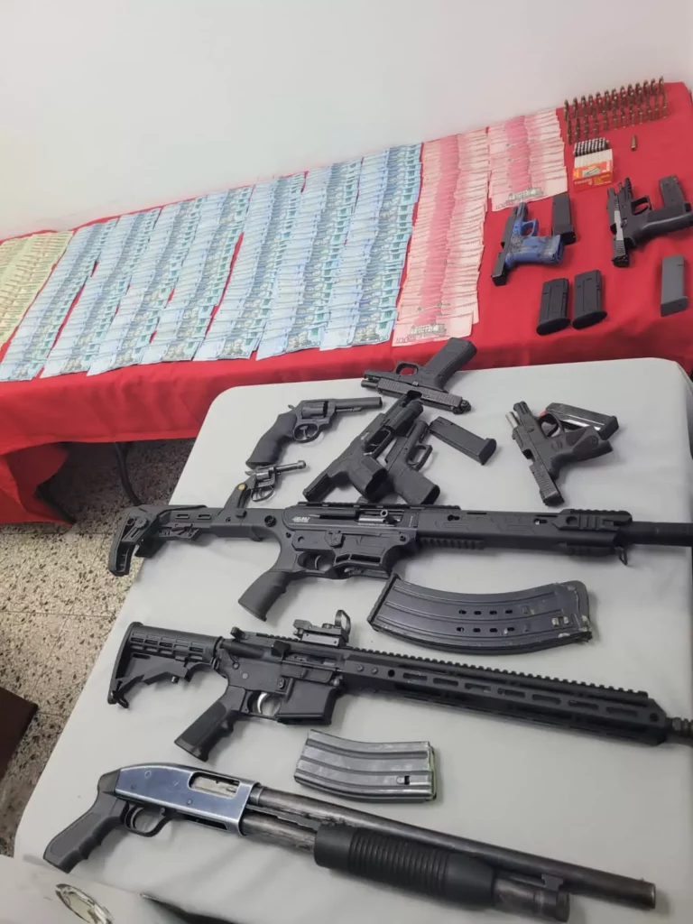 Entre las armas recuperadas en los allanamientos se encuentran un fusil MA15, de numeración 20147188, dos escopetas calibre 12, una modelo 88, de numeración MB05773F y la otra HEDEF, con las numeraciones 4-H21 y D-149 y tres pistolas marca Glock, de los calibres 45, 9 y 43 milímetros, de numeraciones, BWLR783, BCHG055 y B5A2574.