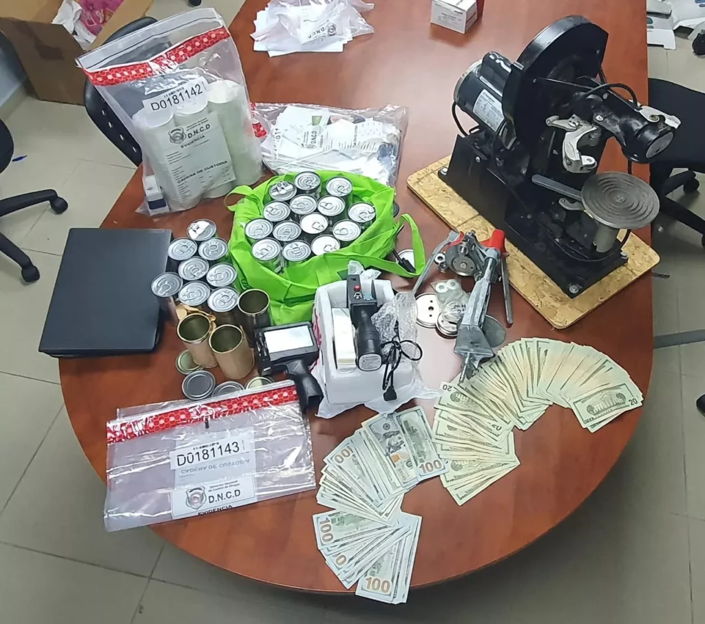 Luego de varios meses de intensa investigación, las autoridades realizaron tres allanamientos de manera simultánea, en el Distrito Nacional y los municipios de Santo Domingo Este y Oeste, donde arrestaron a dos mujeres y ocuparon 8.10 kilogramos de cocaína, 50 botellas conteniendo un líquido que se presume es droga, latas de productos, maquinarias y otros equipos.