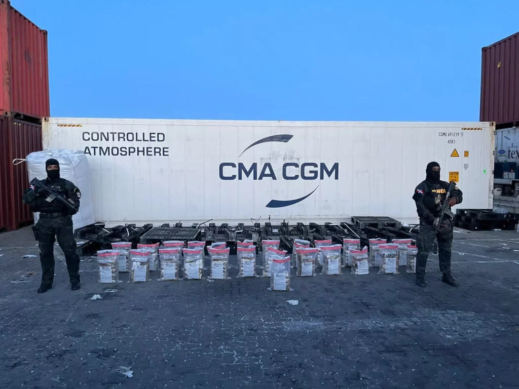 Santo Domingo.– La Dirección Nacional de Control de Drogas (DNCD) y miembros de la Seguridad Militar del Puerto Multimodal Caucedo incautaron 149 paquetes presumiblemente cocaína, en un operativo de inspección conjunto, desarrollado en la referida terminal del municipio de Boca Chica, provincia Santo Domingo.